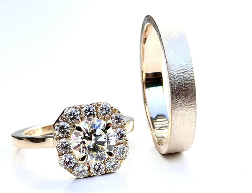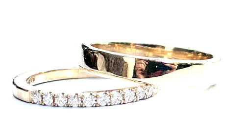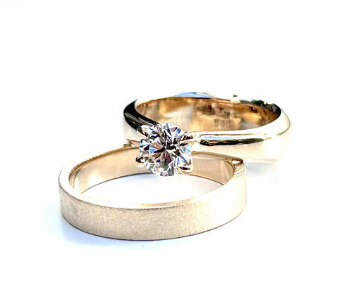 Vielsesringe i gult guld med guld diamant som centersten